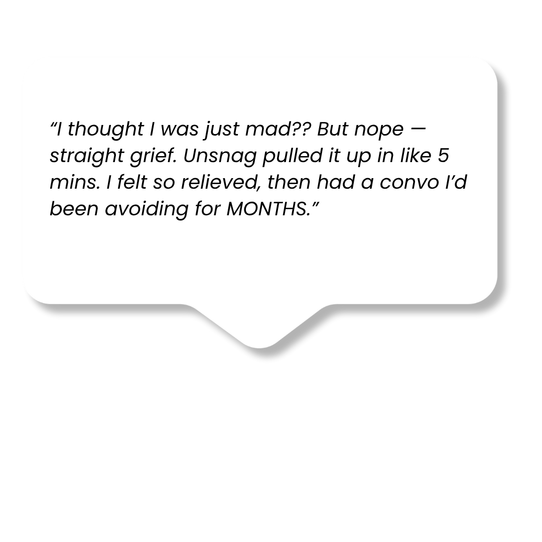 Unsnag isn’t a replacement for journaling or therapy — it’s a tool for emotional clarity in the in-between moments.